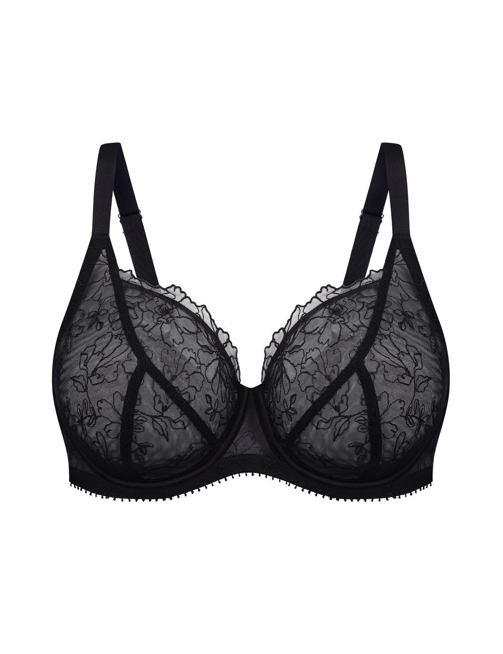 • Biustonosz z miękką miseczką o potrójnym, diagonalnym cięciu tworzy zaokrąglony kształt biustu, lekko go unosząc i centrując;