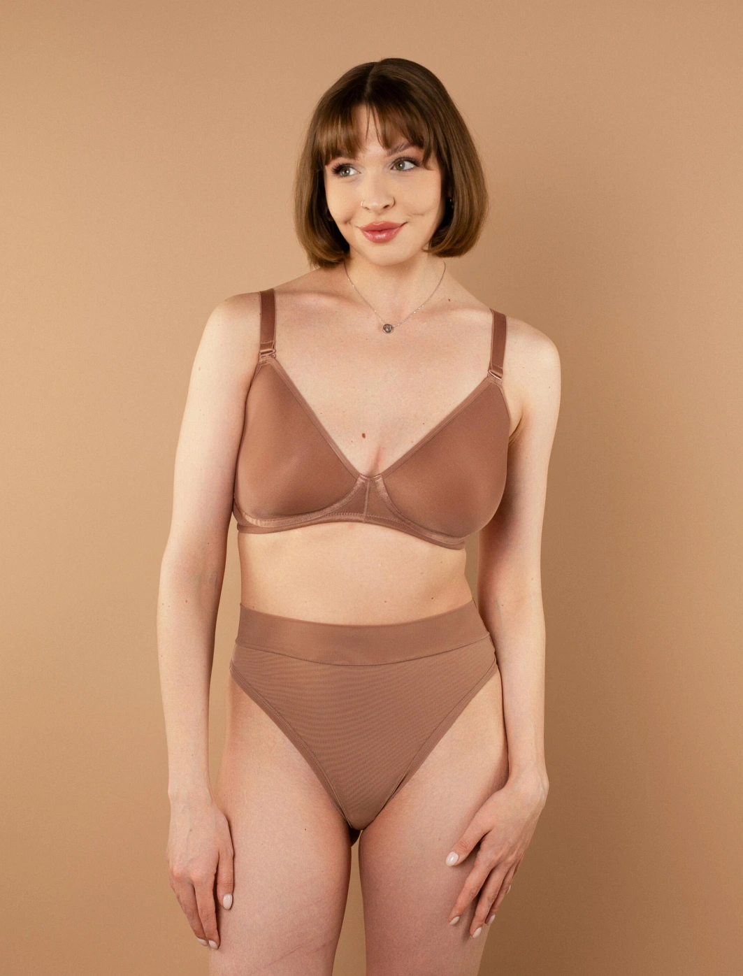 • Materiał miseczek – spacer – wykonany jest za pomocą opatentowanej technologii 3D triple tech™. Jest gładki, dopasowuje się do kształtu piersi i pozwala na niewidoczność biustonosza pod ubraniem;