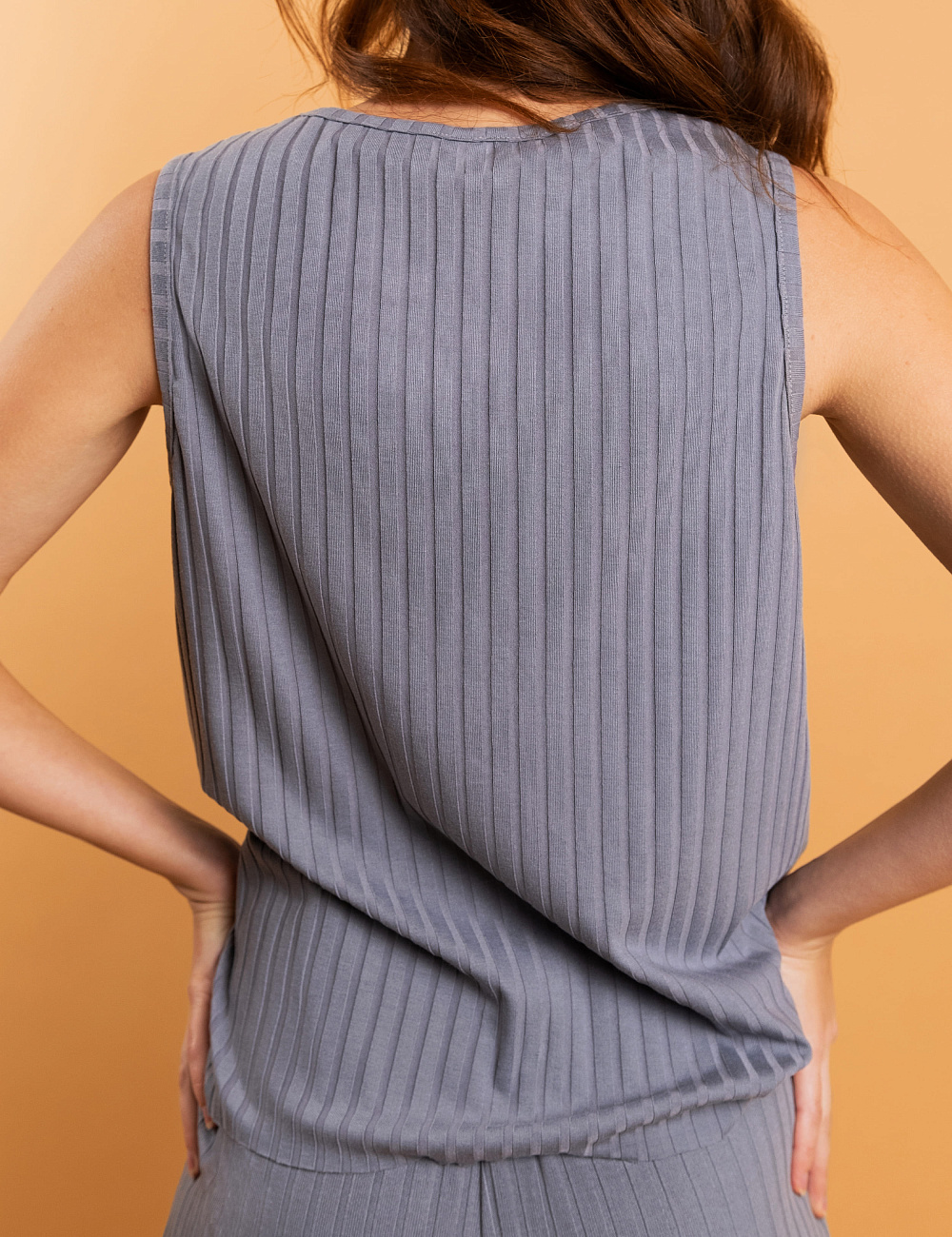 • Koszulka na szerokich ramiączkach, która ma strukturę w "żebro";
