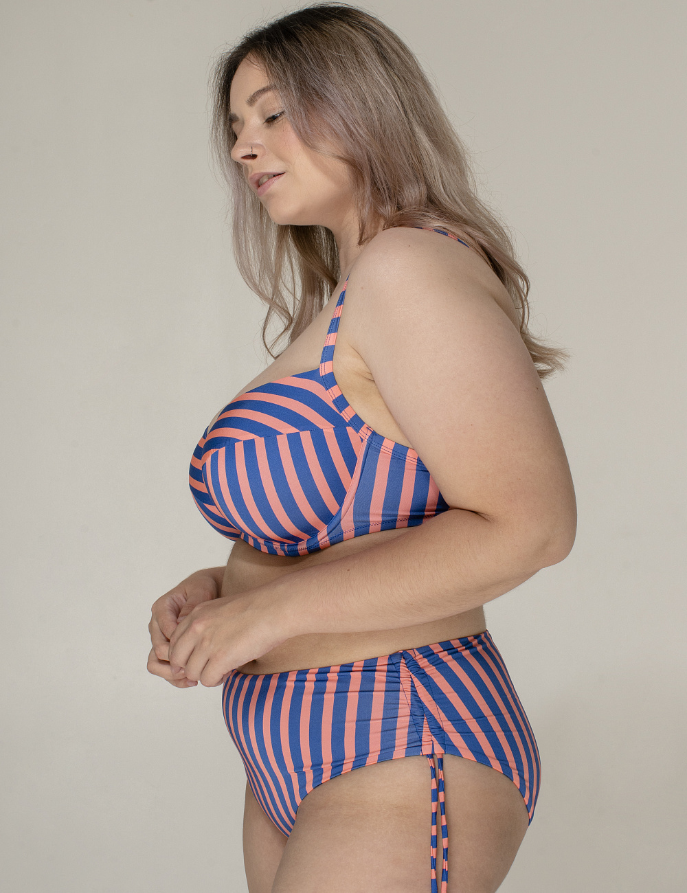 • Szerokość części bocznych można regulować poprzez zaciskanie gumek, tworząc różne dopasowania majtek;