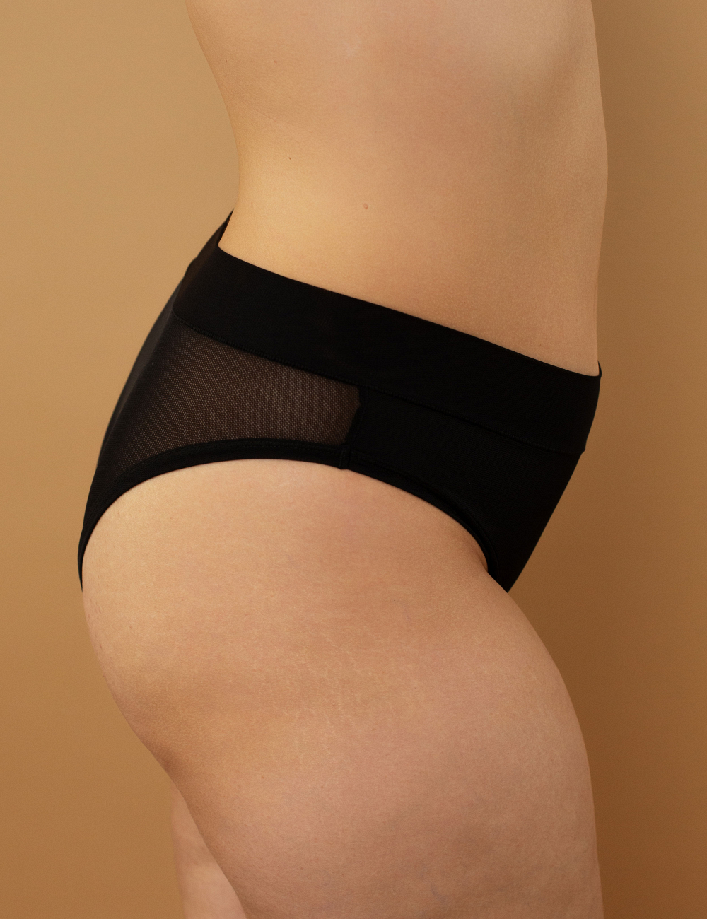 • Majtki wykonane z oddychającej siateczki: przednia część z podwójnej warstwy dla lepszego dopasowania, tylna część z pojedynczej warstwy;