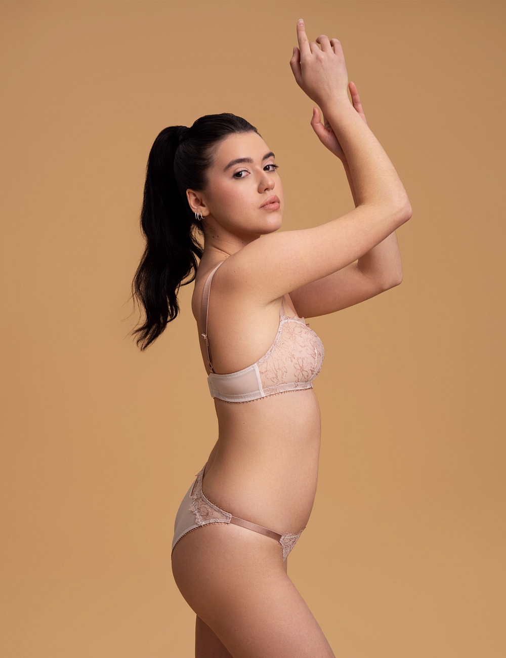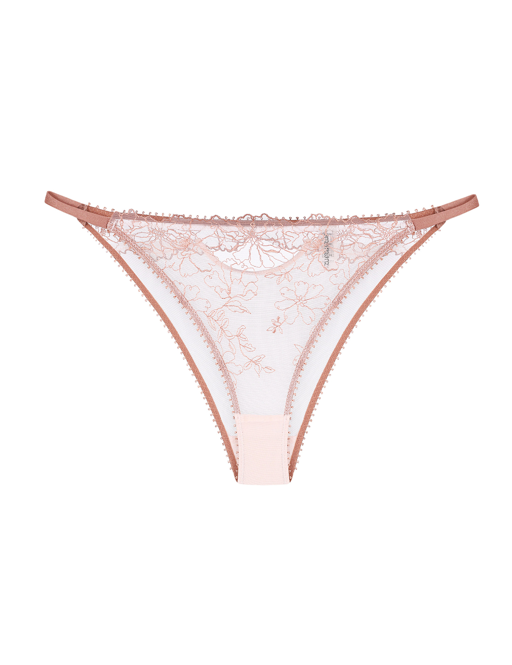 • Górny brzeg majtek wykończony jest przezroczystą silikonową taśmą, co pozwala zachować delikatną przejrzystość materiału, a detale miękko przylegają do ciała;