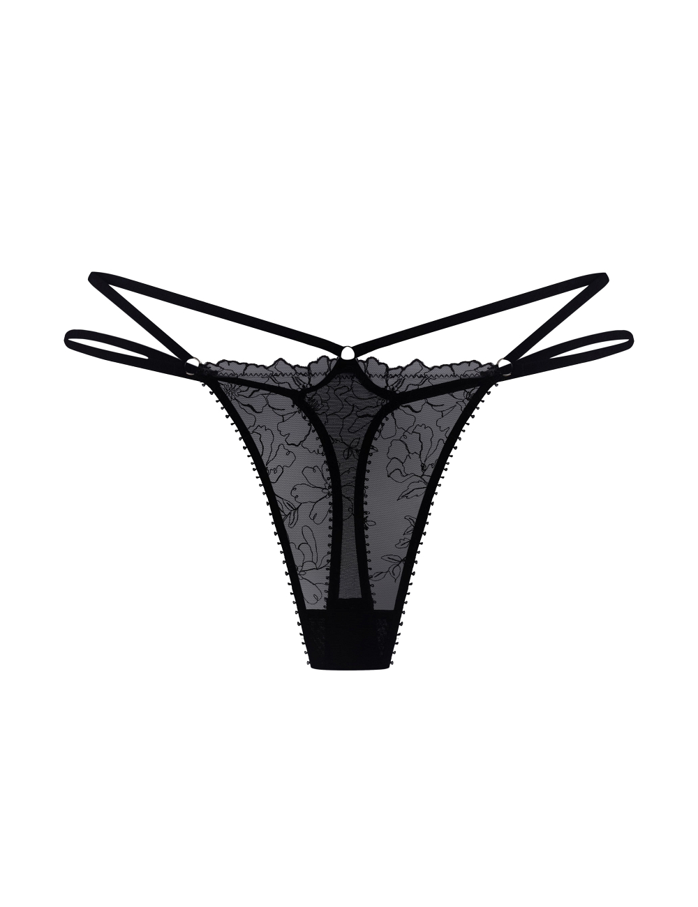 • Górny brzeg majtek wykończony jest przezroczystą silikonową taśmą, co pozwala zachować delikatną przejrzystość materiału, a detale miękko przylegają do ciała;