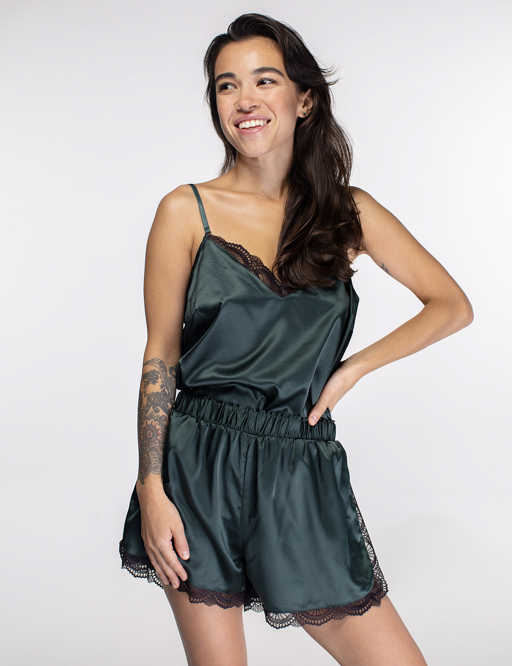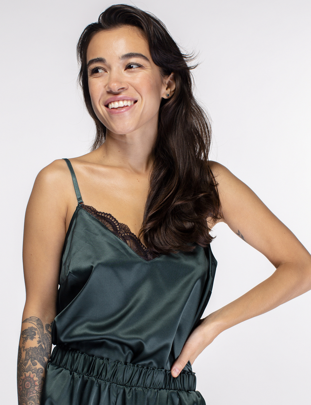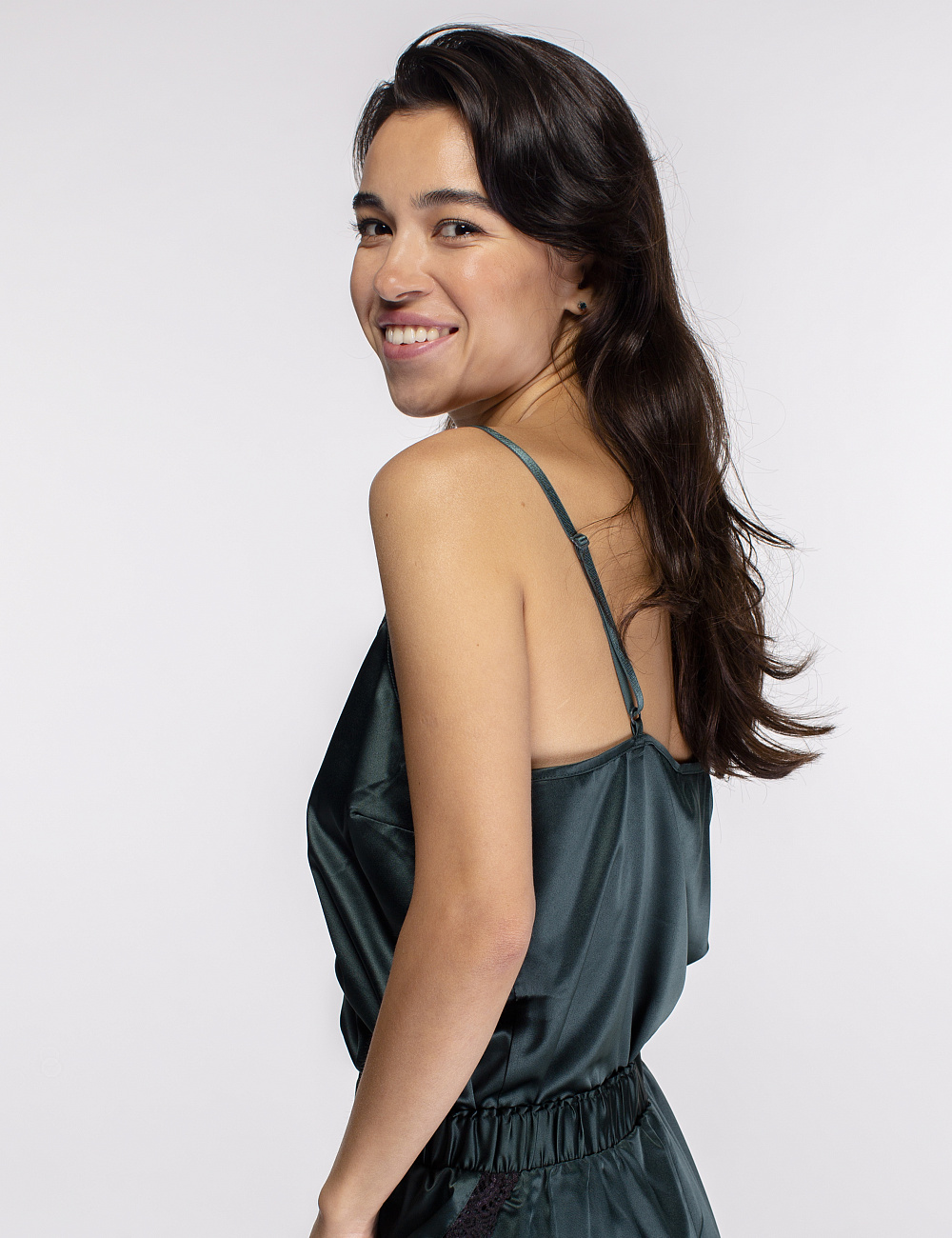 • Top na cienkich regulowanych ramiączkach wykonany z satyny będzie świetnym wyborem do spania i wygodnego noszenia w domu, ponieważ tkanina jest przyjemna w dotyku i ma przyjemne właściwości;