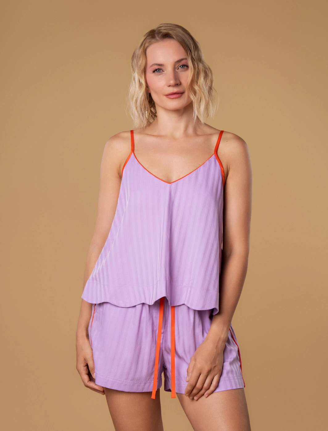 • Top na ramiączkach z dekoltem w kształcie litery V z przodu, który optycznie wydłuża linię szyi;